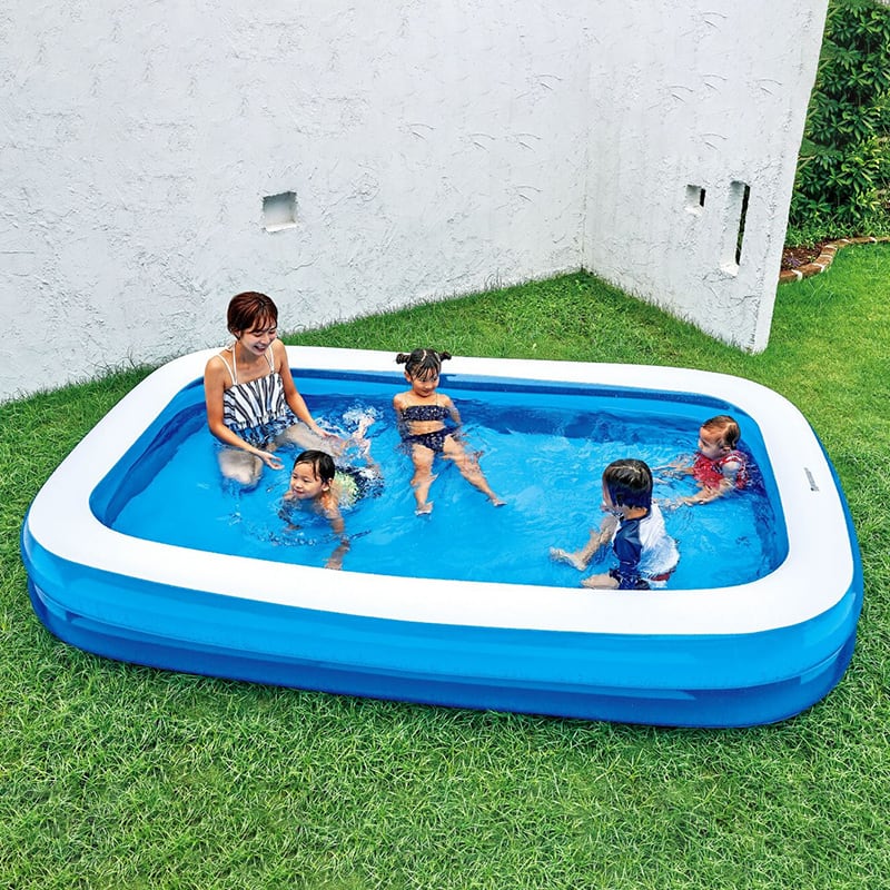 膨らんだ状態の長さが約305cmの長方形の超大型プールです。