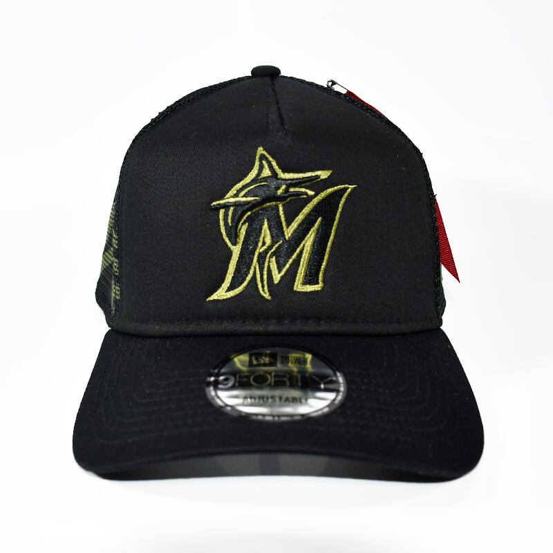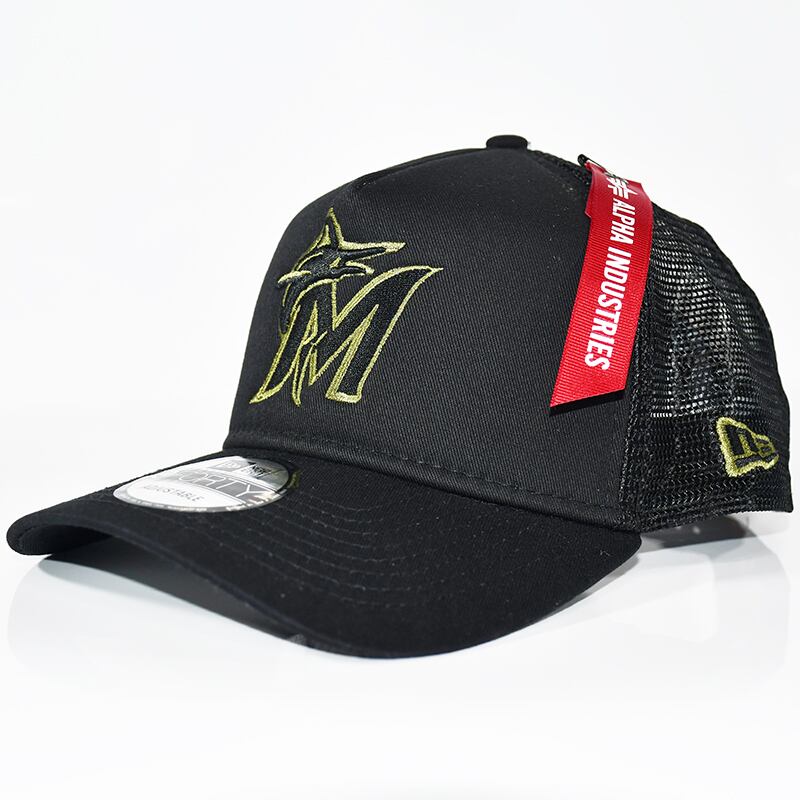 NEW ERA×ALPHA A-FRAME TRUCKER 21089 9FORTY D1 Miami Marlins CAP(マイアミ・マリーンズ ニューエラ×アルファ コラボ キャップ) | ガボットコンセプト