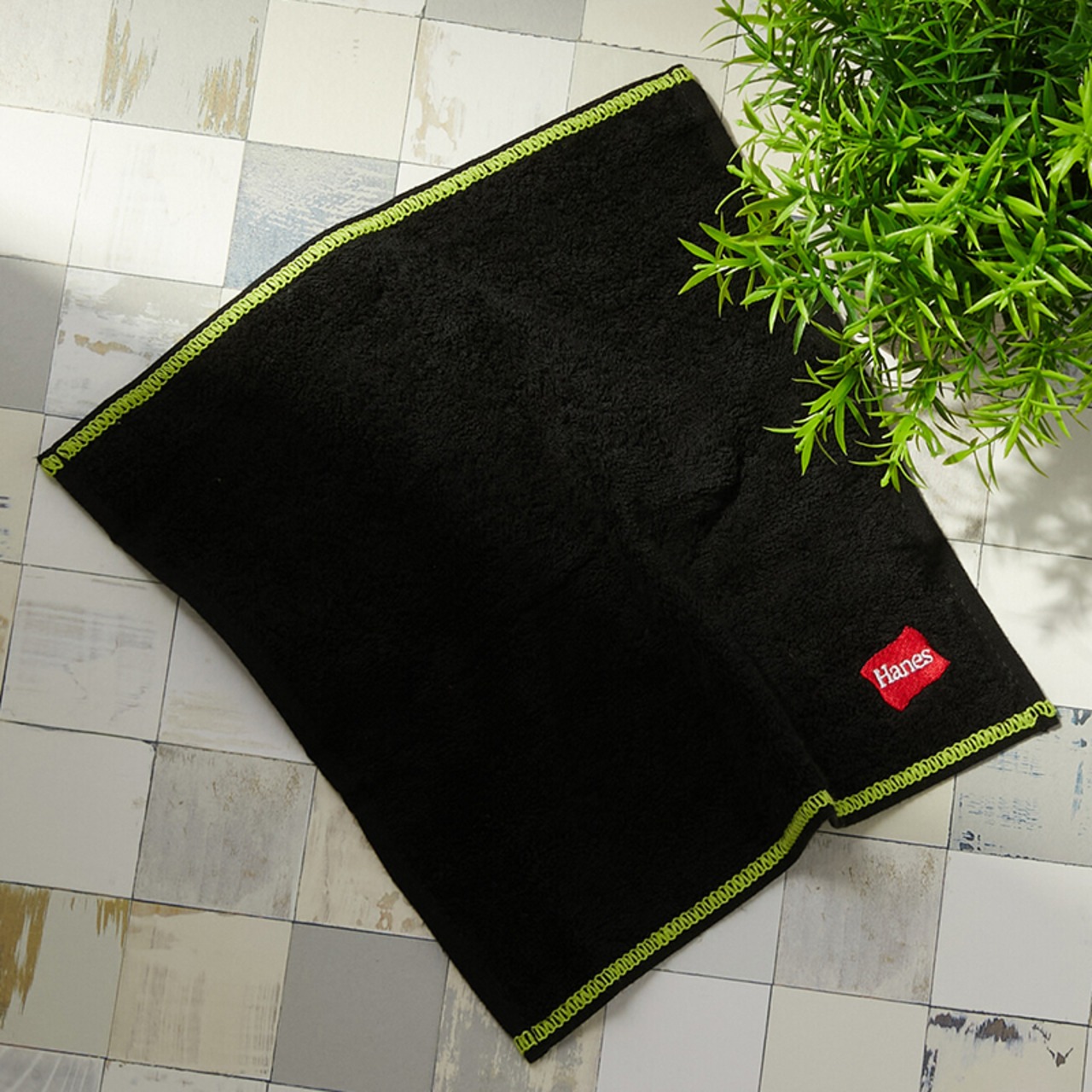 Hanes(ヘインズ) フラッグロゴ刺繍タオルハンカチ(ブラック)