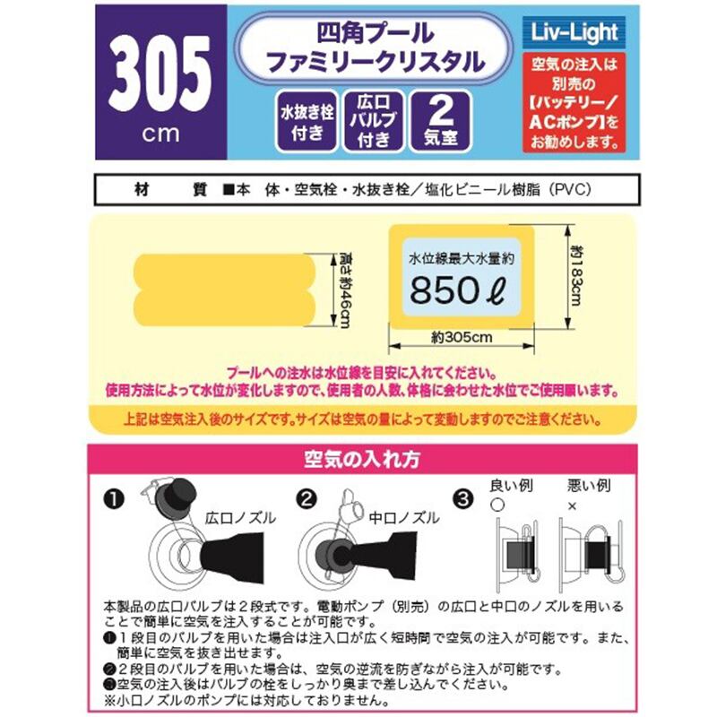 305×183cm 大型サイズ四角プール【直輸入海外ブランド製】リブライト(家庭用プール)